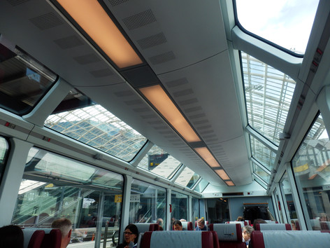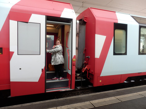 Die Rheinschlucht (Ruinaulta, Swiss Grand Canyon). Die Aussichtsplattform der Mauersegler (il spir) hat eine Höhe von 12.5m und ragt schräg über den Abrund zum 400 m tiefer liegenden Vorderrhein.