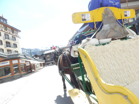 Nach den gewaltigen Eindrücken vom Heliflug, welche nicht zu toppen waren, gönnten wir uns eine entspannende Fahrt mit der Pferdekutsche. Dabei fuhren wir durch Zermatt und sahen vieles, das wir sonst nicht gesehen hätten.